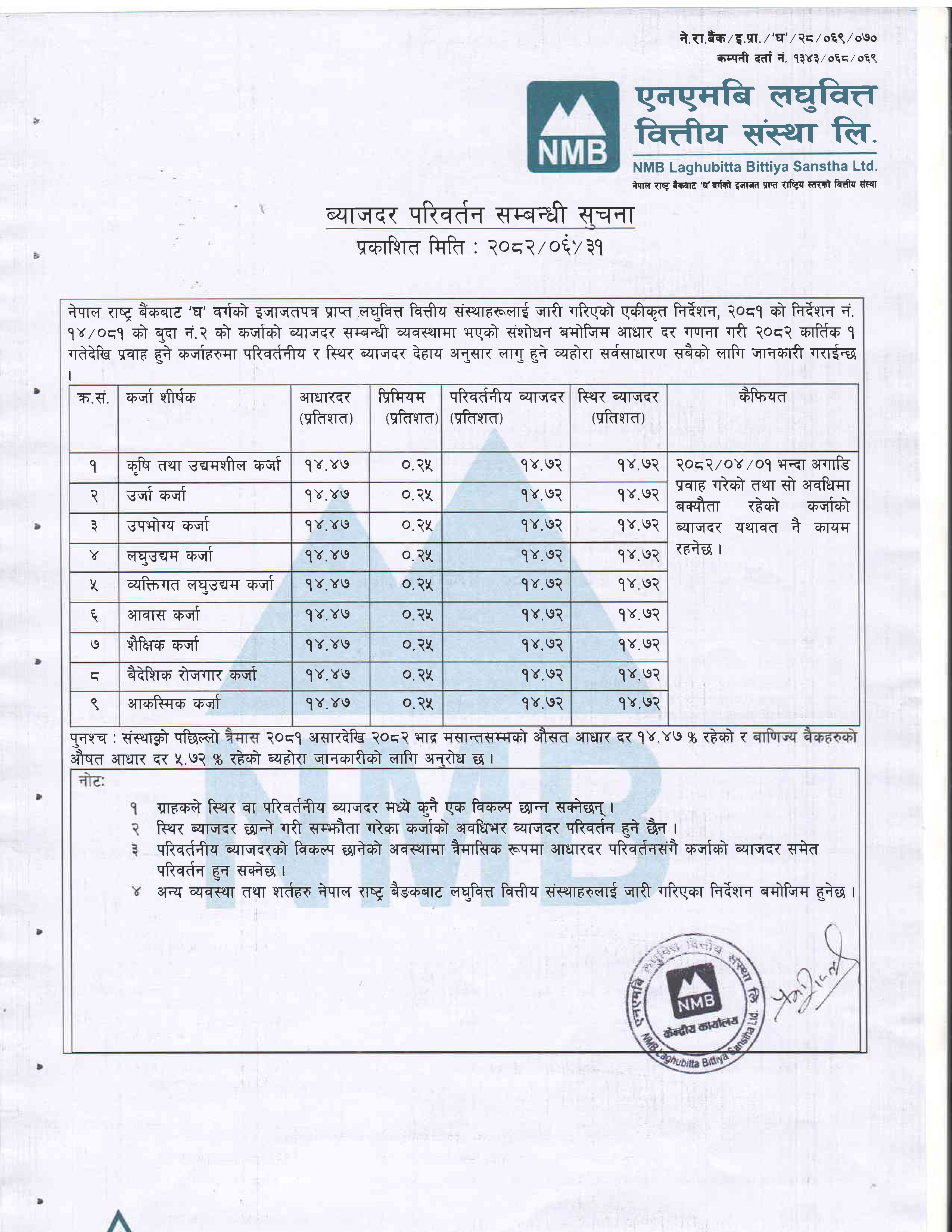 At NMB Microfinance, we are committed to transforming lives by providing inclusive and sustainable financial services to underserved communities across Nepal. As a proud member of the NMB Bank family, we combine innovation with a deep understanding of grassroots realities to empower individuals, support entrepreneurship, and promote financial inclusion.